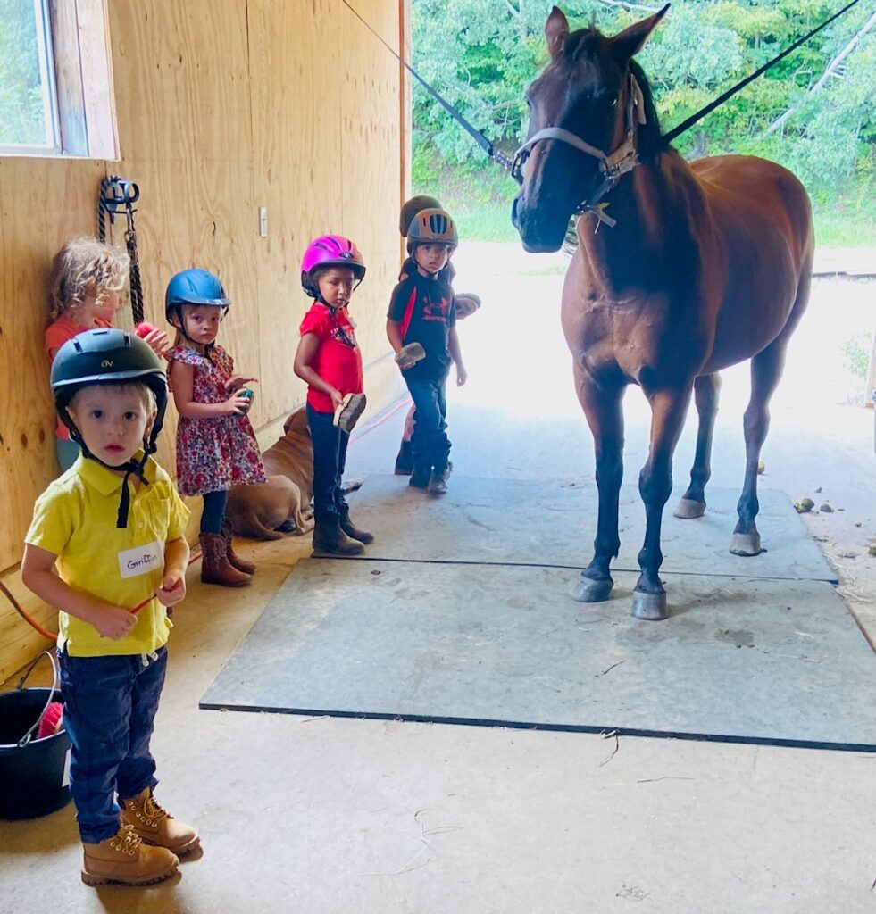 Tiny Riders is a special class for budding equestrians ages 3-6. Much of these lessons is spent working with our horses on the ground. Students learn to safely approach a horse in a stall or pasture, halter, lead, groom and tack their horse, with assistance as needed. Correctly learning these basic skills is crucial to a student’s safety and enjoyment of the sport. Participants will also learn basic riding skills. Parents are encouraged to stay and observe, learning alongside their child.